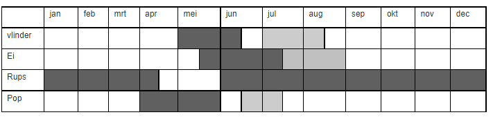 Tabel 2.1: levenscyclus klaverblauwtje: donkergrijs:eerste generatie; licht grijs: tweede generatie ( Butaye et al., 2006).
